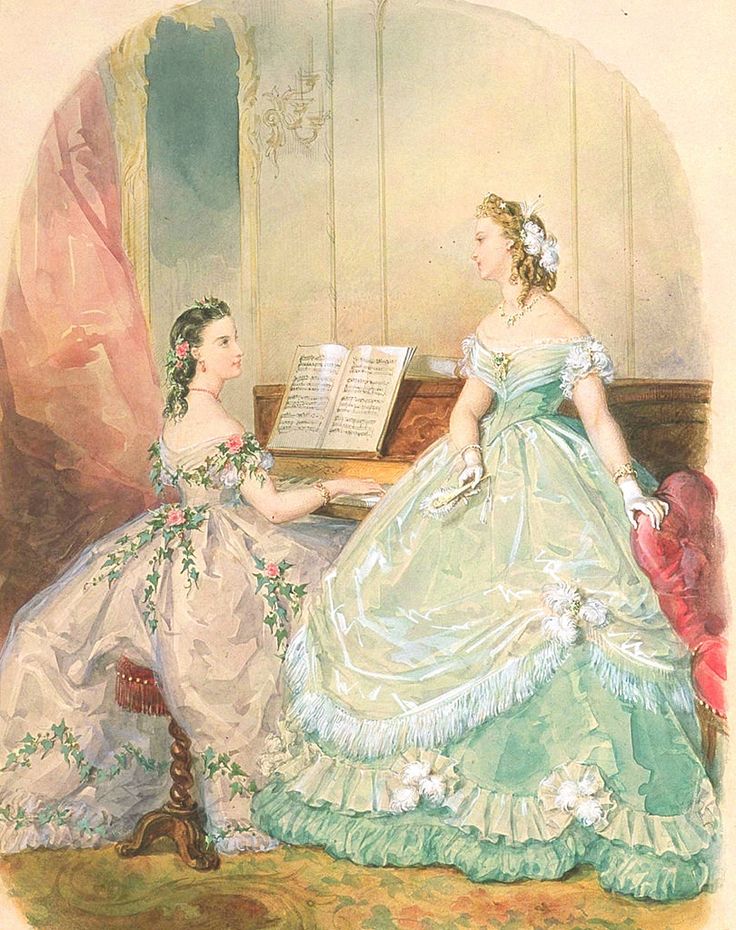 Si vous souhaitez confectionner votre propre costume, voici quelques suggestions de patrons (dessous, corset, crinoline, jupon, haut de bal, jupe, robe).