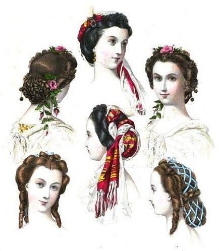 Et pour se coiffer, les cheveux attachés en chignon, avec des boucles ou encore un filet, avec des accessoires comme des fleurs, un diadème, un peigne décoré ou des rubans.