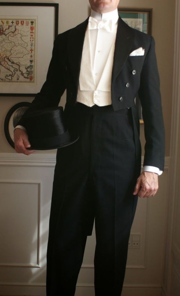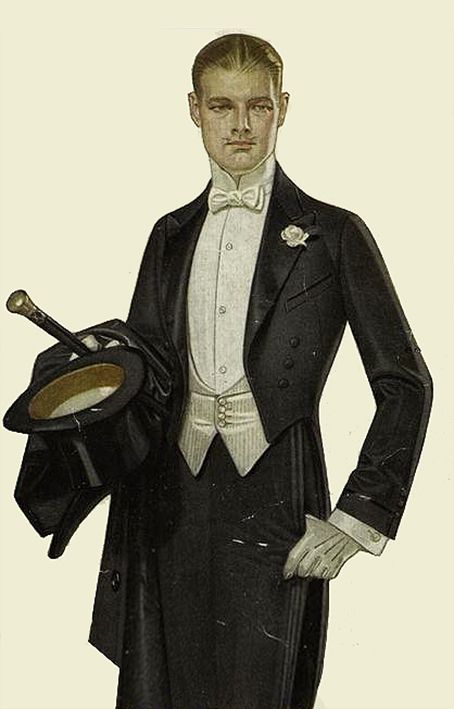 Pour les hommes, le costume avec le pantalon, le veston, la chemise à col cassée, le nœud papillon et la veste queue de pie. Pas de chapeau pour danser, mais vous pouvez tout a fait le mettre pour votre arrivée au bal.